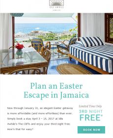 Every 3rd night is free at Idle Awhile Cliffs, if you book by January 31, 2017 for travel between April 3-15, 2017.