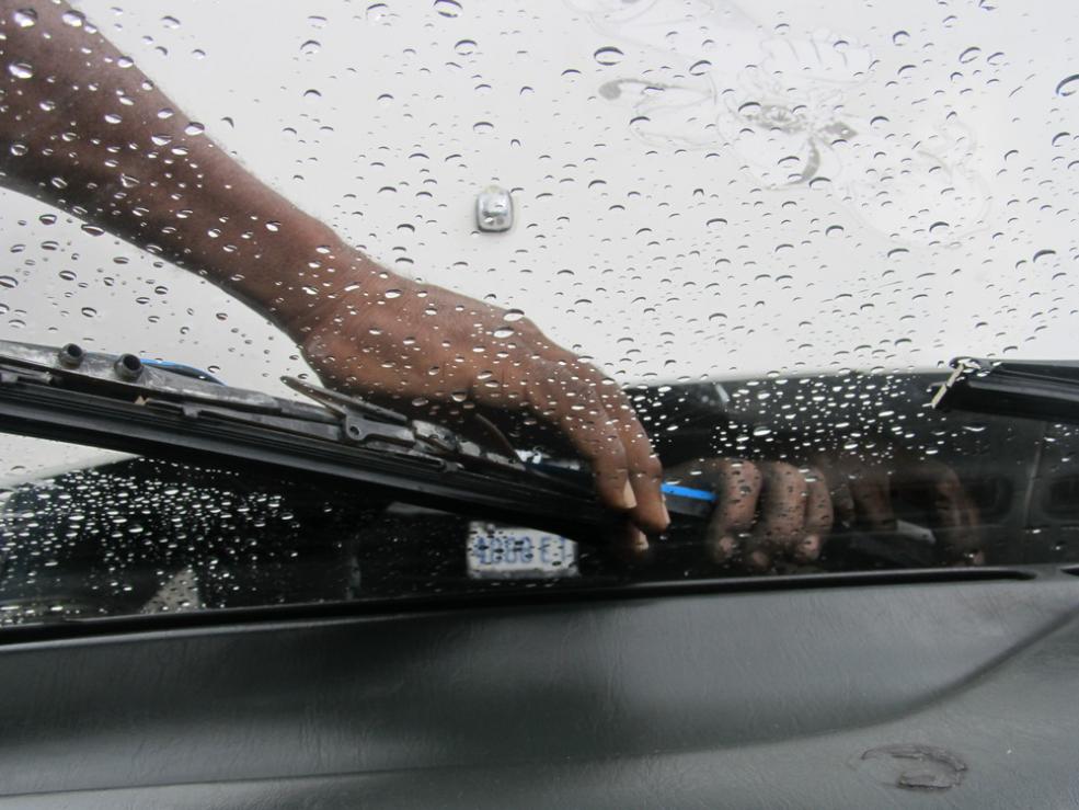 Two minutes into the drive he announces he’ll be making a quick stop on the way. Something is wrong with the windshield wiper(s) and he needs to get it checked. Oh yeah, you do need those in PA…but I’m HUNGRY!
