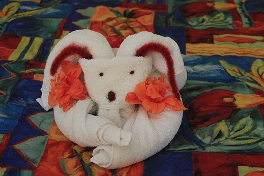 You get to put your stuff in a locker for safe keeping.. and the towel art is done by our awesome housekeeper on our return ~