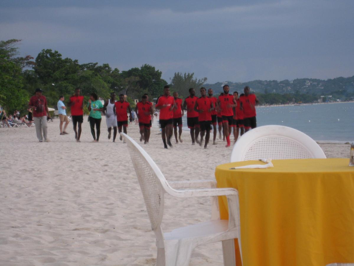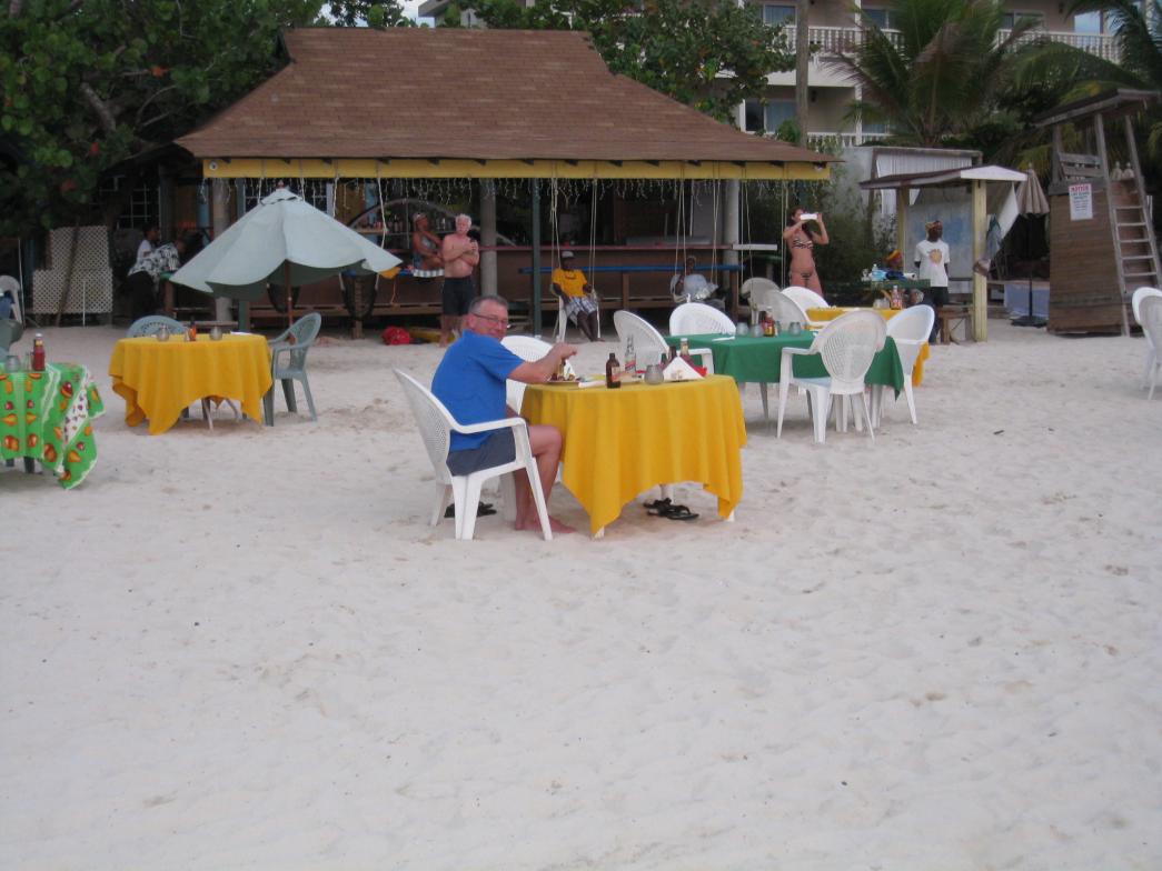 Now, usually upon arrival, I take a few minutes to get situated in my room. Hang up my clothes, put shower stuff in the shower etc...not this time. Literally, we dropped it and headed out. We get down to the bar and Margaritaville is there giving out samples of raspberry, mango, and strawberry margaritas. Most of the folks who had been there were drifting away as they were wrapping up. Well, he made us a sample of each and by this time we were the last two there. Keep in mind, we were running on very little sleep, had mimosas for breakfast, rum punches on arrival, Red Stripe at Biggas, and now this. The guy asked what our favorite flavors were and proceeded to make us each a giant margarita in one of their regular cups and gave them to us because we were the last ones. Bonus! Well..they sure were good. Oh, and might I add, we've only eaten at Biggas since dinner the night before. 1/4 chicken does not an alcohol absorbent make. From here, we walk out to the water. I cannot WAIT to get my feet in the water. Something about the water along Negril's shoreline therapeutic to me. It just takes the final remnants of stress and releases them.