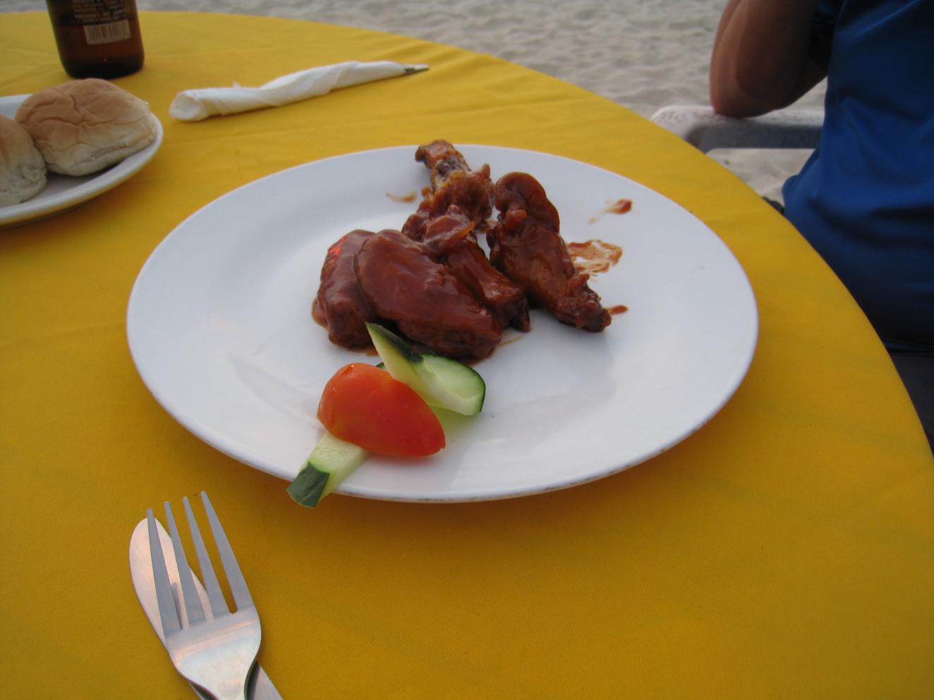 I woke up and we decided to get ready and head down to SunBeach for dinner around 5 pm. We got there before the tables were set up, so we just hung at the bar and waited until Dennis was ready for us. He gave us the table closest to the water where we enjoyed a fantastic dinner! I had the fish and chips and hubby had the steamed grouper. We had the wings as an appetizer and they were DELISH! The sunset that night was probably one of the best I'd seen and it was directly in front of us. Nothing like having a front row seat at the show! While we were eating dinner a soccer team was out for a run on the beach. Dark was starting to settle on the shore so we finished up and headed back to Sunnyside. Are you seeing a pattern yet? A few pics ~ The next installment: Hanging with Garfield and Odie.