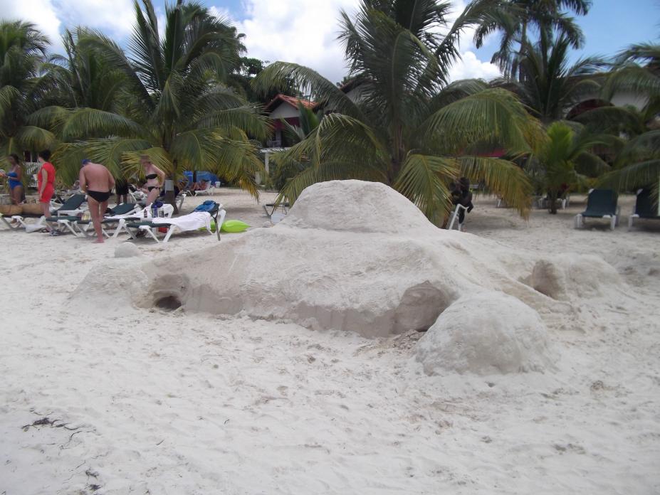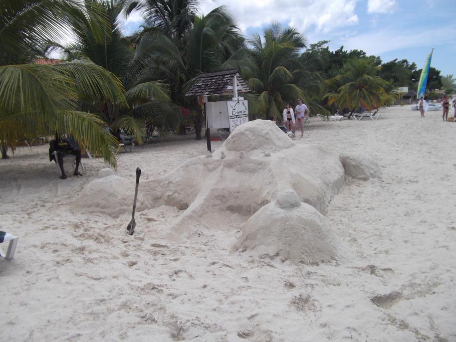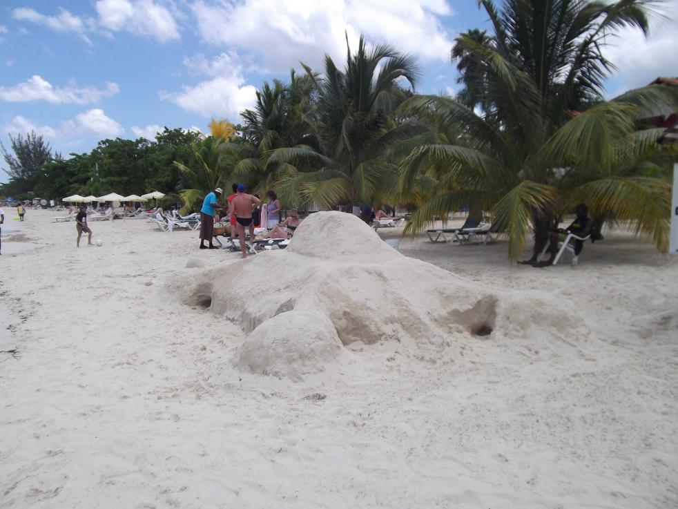 sand sculture on the beach..was told it had been here for a couple days..thoought it was fred flintstones car, but upon futher review, appears to be a turtle