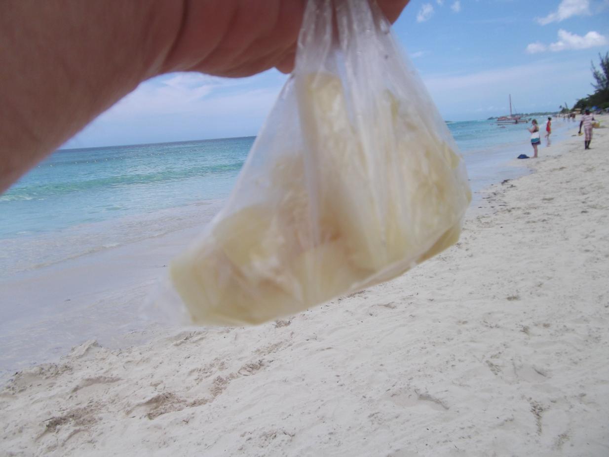 fruit vendor on the beach...bag of pineapple for 1.00