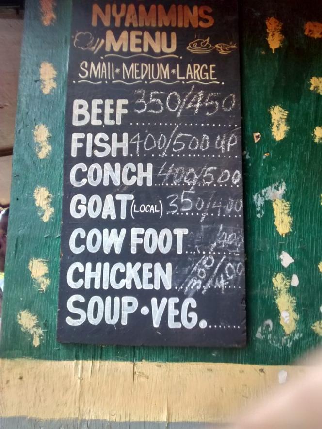 Kuyaba lobster, sun beach escavitch fish, charela lobster pasta, alfreds fish and chips, cosmos escovitch fish, sea splash coconut chicken, Chances for pizza. patty guy pushing the bike on the beach, Best in the West jerk Chicken, our favorite spots.