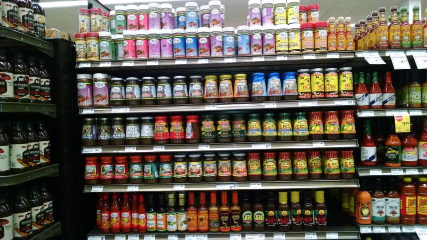 The cans of tinned ackee are right below these beautiful bottles. I talked to the stock guy and he said they are trying to get other ackee vendors in. Pretty nice selection of jerk spices and others all at my local grocer (Pete's Fresh Market again in Oakbrook Terrace, a western suburb of Chicago). No need to bring back anything except JBM coffee and I still feel like I am supporting Jamaican industry. I would also like to see some Jamaican honey and sugar for sale...
