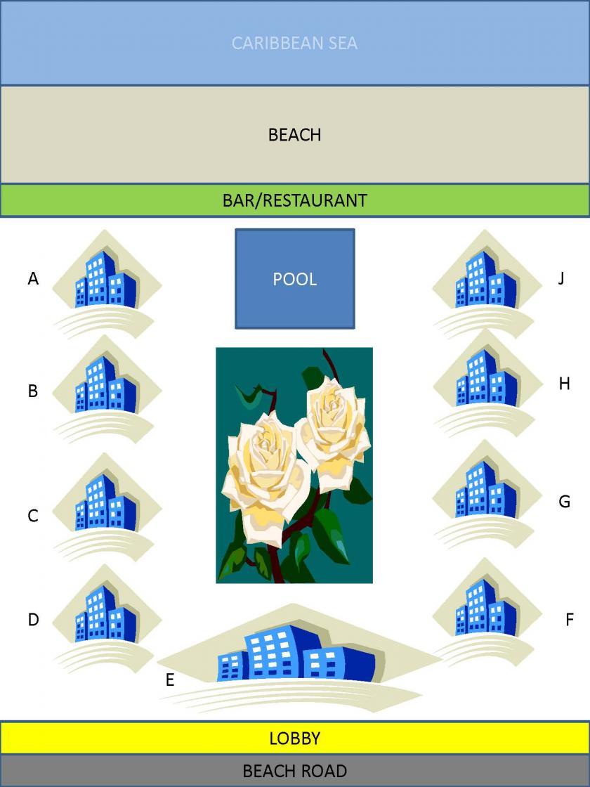 From one of my trips, I had questions about the layout of the property so I did a map using Power Point. I'm no artist or designer but it does give a pretty basic idea of the layout of the property (I don't know how to make it smaller -- sorry)