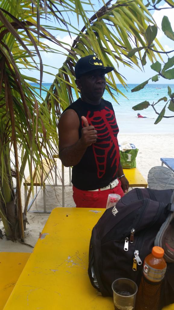 the next day was Sunday April 16th...it was Easter Sunday...it was also my Birthday...It started out with a slow morning on the veranda...they were clanging and banging stuff together next door, taking down the stuff from last nights party and moving it over to cayenne beach, for todays party...It is a wet and wild soaking wet party...that has been my plans all month for my birthday...I take a walk down the beach this time towards town...I get to the river and decide corner bar again for lunch...I cross the river behind burger king and go get my lunch....I walk back to sunrise club...I get my beach stuff and set up my base at BarBBarn...Michael Dendy, long time security always takes care of me when I hang there...I lay in the sun, bake for awhile, swim in the sea, bake, swim, repeat...It is getting to be about 2pm...I have now decided to go to drifters for awhile before cayenne beach....cayenne beach runs from 2pm-until??So i head to the room to get some money and supplies for the day...I leave my beach stuff set up at my base...