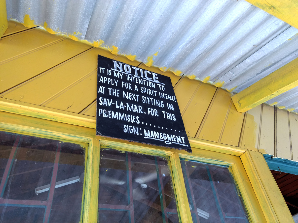 We headed out the gate at Tensing Pen and crossed to the other side in front of Shark’s. Within 30 seconds an old sedan with a red plate rounded the corner and I stuck my thumb out. The driver pulled over and I said “route taxi, 300J to Quality’s”. The driver mumbled and nodded and we climbed into the back since the front was occupied by an older woman. We dropped her off just up the lane and waited for her to come back out of the house with money for the cab fare. Once they were settled up we continued back up the West End into town. As we drove I was looking around still trying to get the lay of the land. When I noticed that Canoe was approaching I should have said something as I was pretty sure that Quality’s was nearby on the map, but I figured the driver knew where we were going. As we approached town I mumbled to my wife that we I had ****ed up and we were headed to the roundabout. The driver did not stop but instead asked us where we were going as he circled back. I told him I thought he heard me but he said he had not. Once we got there I gave him a 500J bill, to which he responded that I owed 600J because we had taken the route down and back.