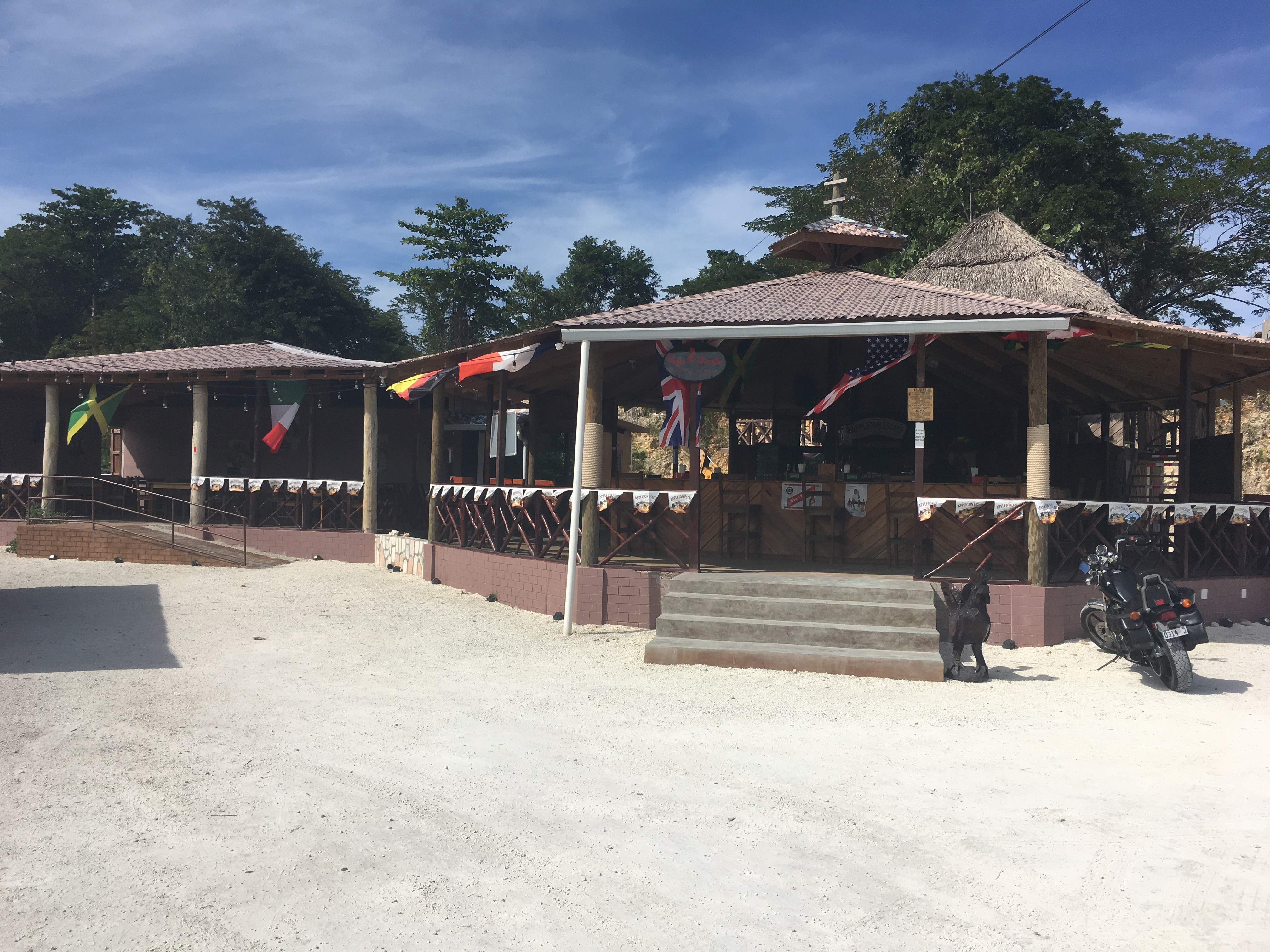 Out for a ride on my motorcycle and I came across this place just outside of Lucea. This would be between Lucea and Bull's Bay, maybe a little more than half way from MBJ to Negril. Nice place and nice washrooms. Beers were $400 but right on the main road you expect that price. I won't pay any more than that but these beers were icy cold so worth it. I didn't eat but the prices seemed fair and I I had a look and the jerk looked really good. The only complaint was the music. So loud you couldn't even hear yourself think.
