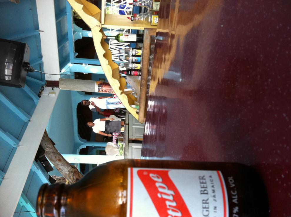 After returning from a walk witha stop at the Wild Parrot, and a look at a room, and visit with an old friend who is now the bartender there,a walk down the beach back I see the beach has become about 15 or 20 feet wider by treehouse, the most beach there in at least a couple years, but farther down by Barry,s bar there is no beach! Seems like it is always changing from year to year. OK so I end up back at the bar at Fun Holiday, would you look at that the old clock on the wall says 12, can I have a Redstripe please? Afew stripoes later and a nice talk with Bill (billdonna on here). Now the day has started time to grab my gear and head out. Getting kinda hungry by now so I make a stop at Best of the West for some chicken and a few stripes.