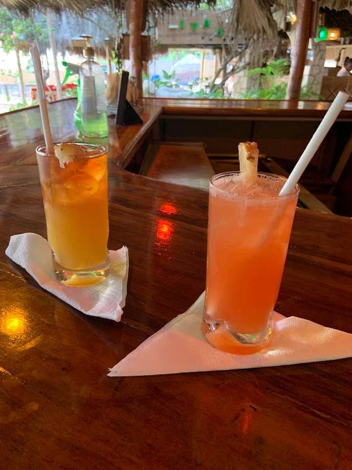 We decided to get cleaned up for dinner and headed out early enough to make a pre-dinner stop to see Collette. After our visit, we went to one of our long-time favorites…Catcha! At least once every trip, we go to Catcha for dinner…starting with a cocktail at the bar. Monty usually gets the Category 5 Hurricane and this night was no exception. I tried the Hawaiian Sea Breeze which was delicious.