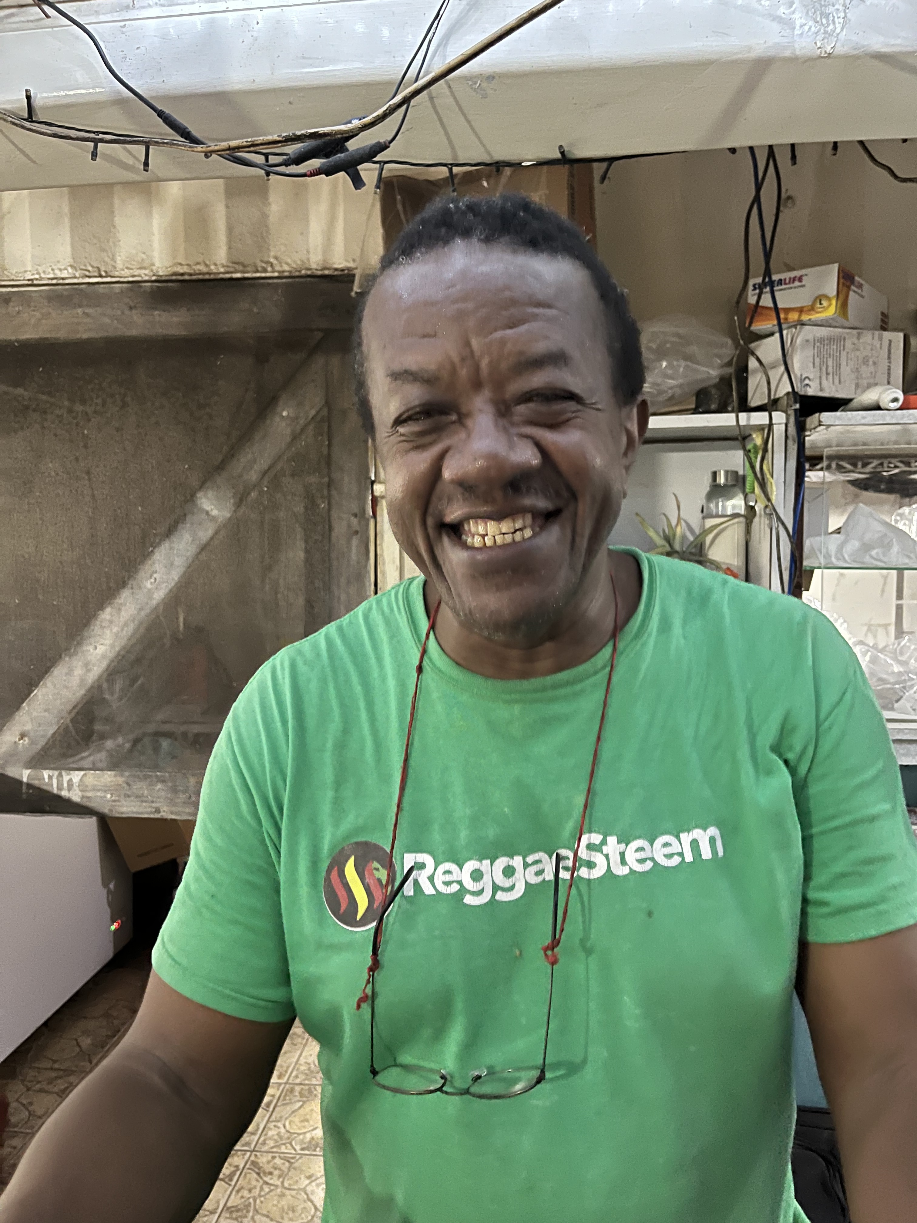 An older Jamaican man is walking towards me. The closer he gets, the bigger his smile gets!