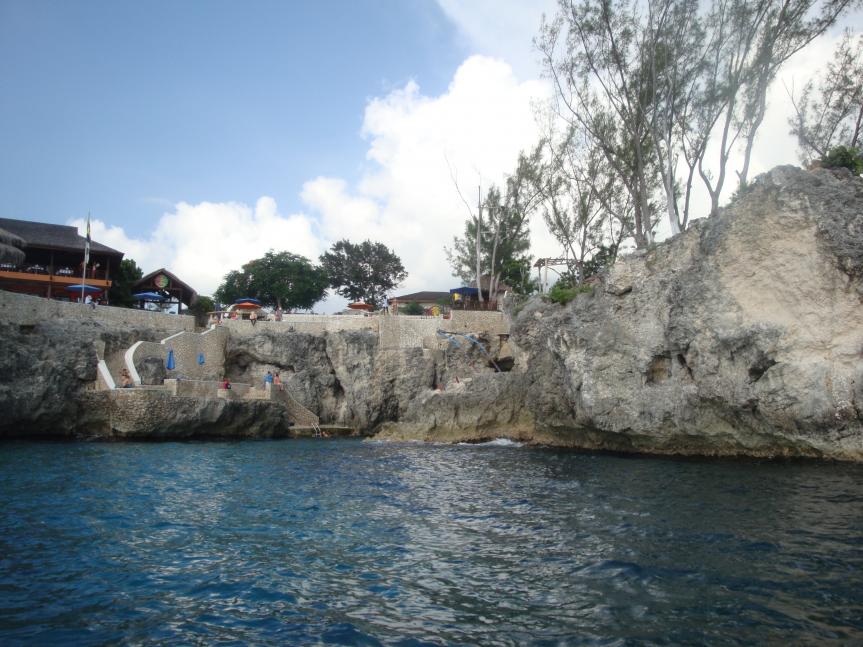 A view of the cliffs @ Ricks from Mikey's boat.....we went snorkeling in the caves, he dropped us off at Rick's for drinks and to watch the sunset. Awesome day!!