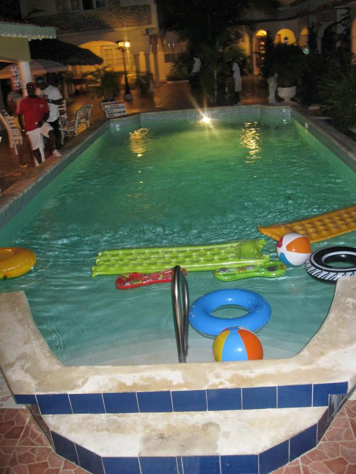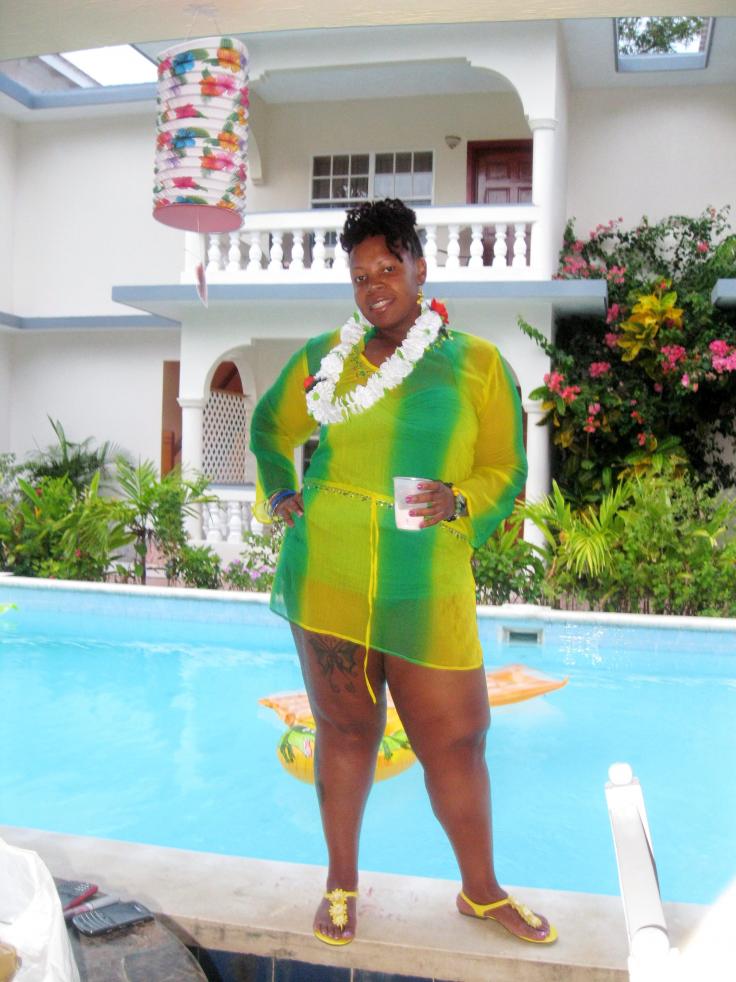 In planning our trip this time we thought...HEY LET'S HAVE A POOL PARTY. It was small and we just invited a few folks, SxyATL brought some hot dogs, I made hamburgers, the Rayon threw in some jerk chicken, MsDreadyV made baked beans, her friend made coleslaw and potato salad and other folks brought a bottle. It was an American BBQ in Jamaica...:) :)