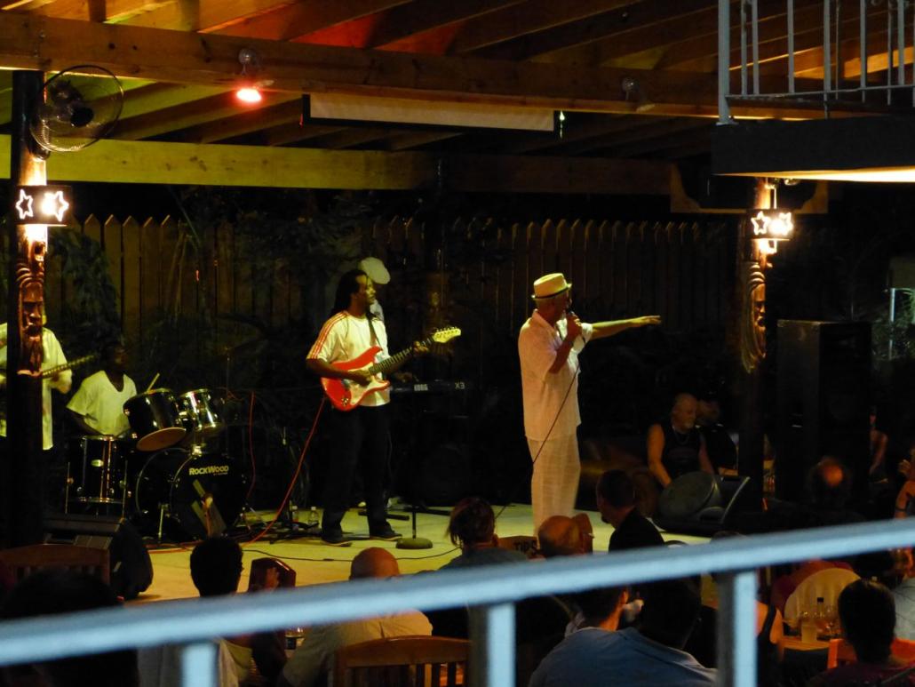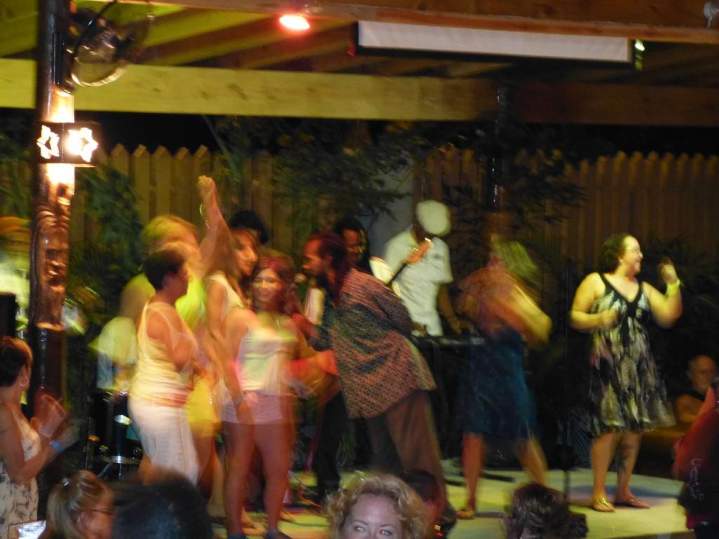 UH OH ! nowhere to sit ! Finally Dave finds a table up by the pool overlooking the bar and the stage...Perfect