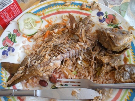 We got to Mango Tree and they had our fish set aside for us. We all ordered the whole fry fish. After a short wait, out it came and it was amazing. As you can see I enjoyed it.