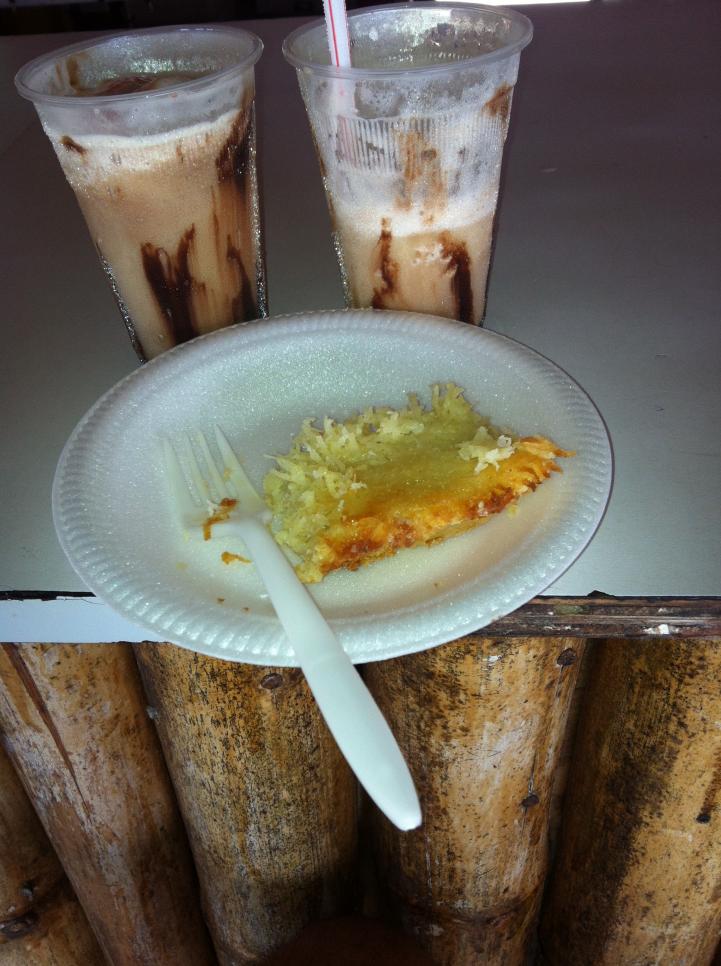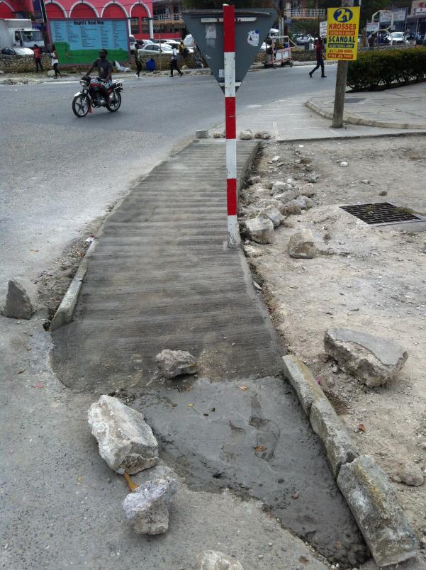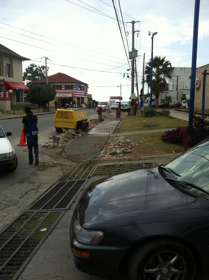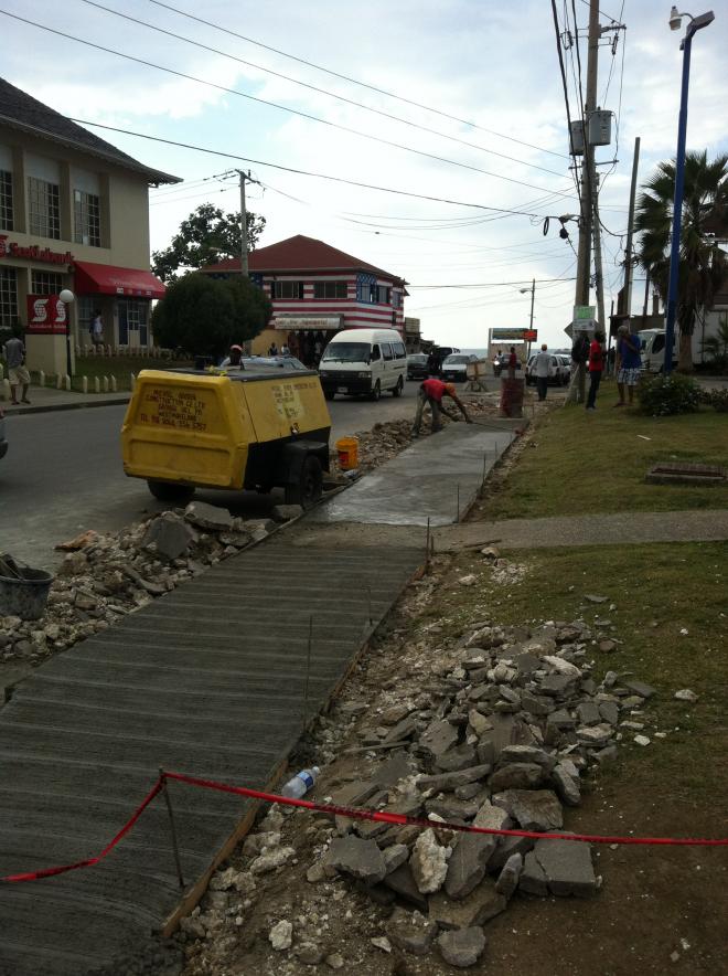 Still before dinner, sidewalk repair in town and look at them soursop!