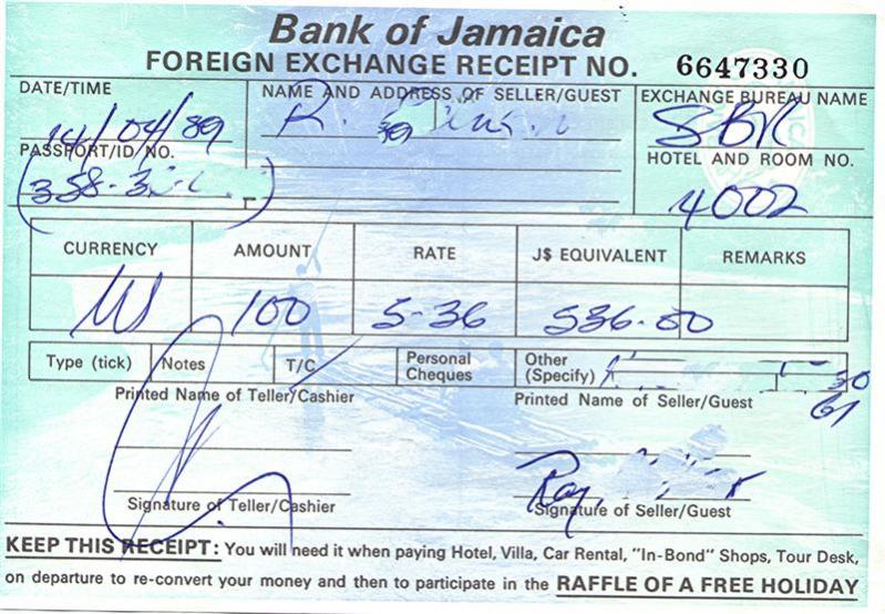 $5.36 US got you 100 Jamaican...now thats! gettin more for your money (wholesale was .50 cents for Red Stripe)