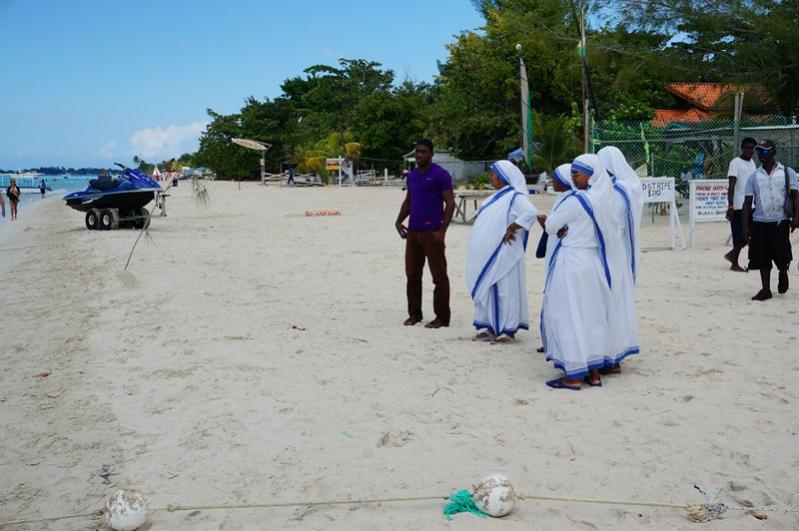 Very interesting to see nuns on the beach.