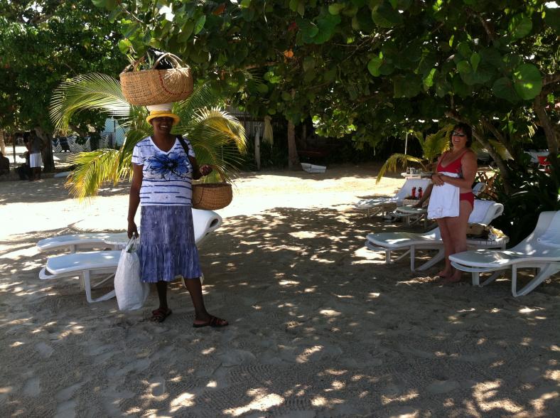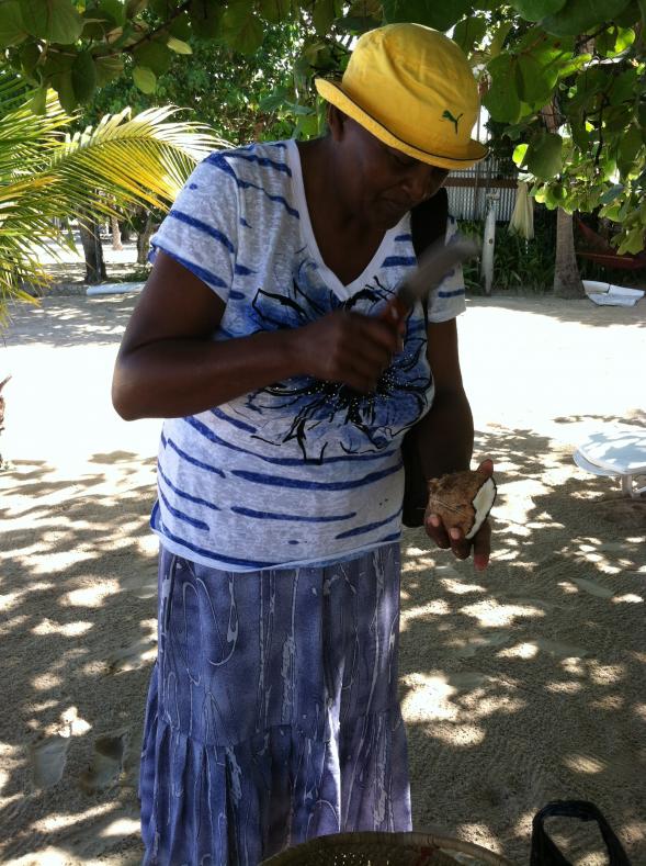 Of course you've got to get fruit from the fruit lady. "Aaannny fruttttt?" She is such a delight. We got fresh pineapple and fresh coconut from her and my husband got some great snaps of her which are below. I have never tasted such great coconut and it's such fun to watch her open it and then to drink the fresh coconut water right out of the shell! My husband shot some pics of her while she was cutting up the fruit and then when done asked her if he could take another picture of her smiling for the camera. She agreed and said "wait one minute, wait one minute, mon" Then she had me hand her all her different bags and baskets and arranged them on her body exactly the way she carries them, said she was ready now and then posed for him like she was Tyra Banks! I loved it.