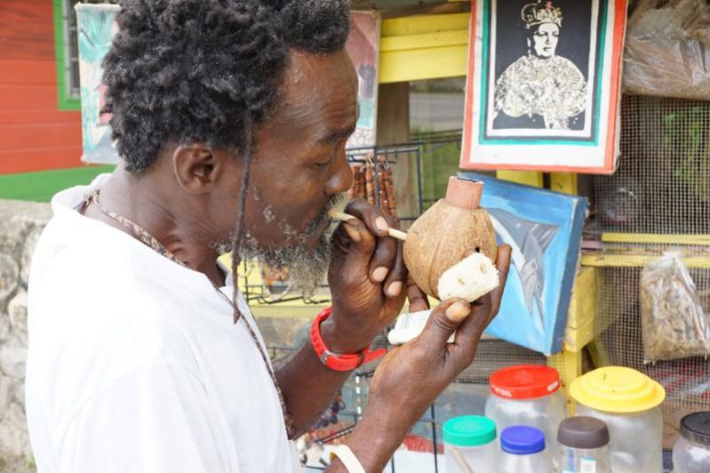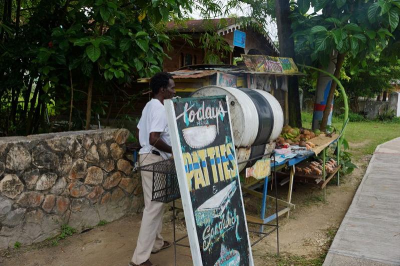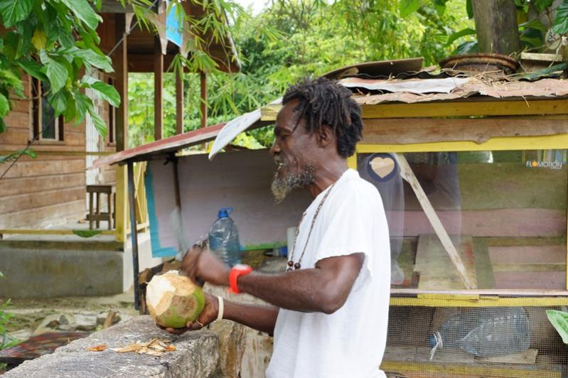 Walking back to our hotel we stopped and chatted with Dave. He had a little roadside stand along the side of the road. Walking by his stand before he had simply offered us a "Good Morning". He had something cooking on a grill and I was curious but nothing was ready yet and he tempted me with a jelly coconut instead.