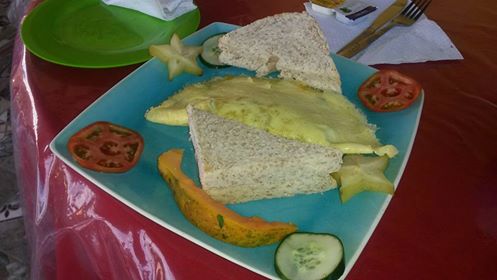 The Sea Breeze Omelet was my choice. The veggies were small dice and perfectly seasoned - including the tender small stems and leaves of callaloo, and the shrimp was so tasty and fresh. All cooked to perfection inside the omelet. Fresh, sweet fruit, and wheat toast. Kenisha makes a GOOD cup of coffee, good and strong.