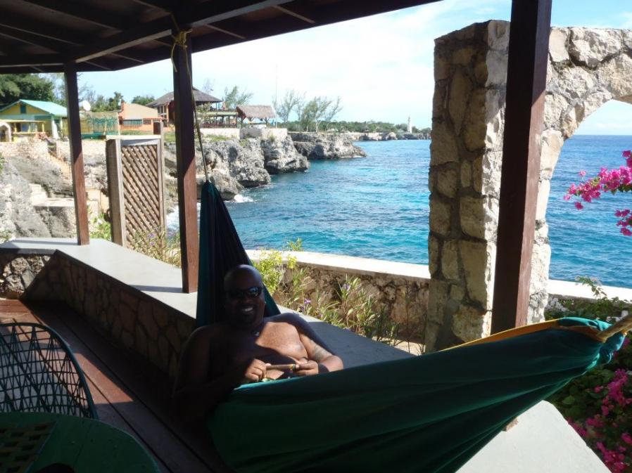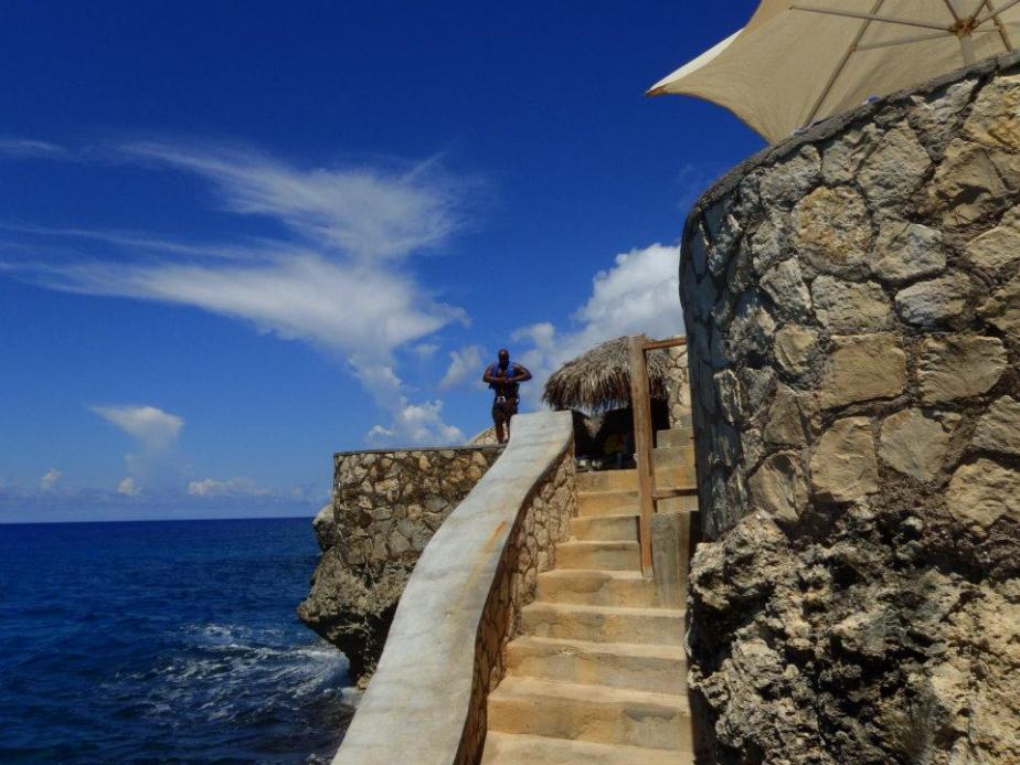 My eyes are barely open as I ease into awakeness…..but what is that sound…..oh no, not again. Please, I am having flashbacks, and not good ones. One year ago to the day I was awoken by the sound of pouring down rain outside my room….it was my wedding day and when the rain woke me up I knew the sound to be, not the small brief raindrops, but more of the all day heavy downpour type. Please don’t let this be happening again. Sigh. What will everyone tell me this time…..since last year I was repeatedly told how rain on your wedding day is a sign of good luck (blah blah blah)….well what does it mean on your anniversary? The sound is loud too, ugh, this is not fair. So I get up head to the door and open it. Much to my surprise there is no rain at all, in fact the sun is shining so brightly that it nearly blinds me when I open the door….the sound…that sound I thought was rain, it was just the sound of the water and the waves crashing up against the cliff which we were perched directly over. That sound saddened me so greatly on our first morning in Negril, but it then became a sound that soothed me to sleep every night, and a sound that I will never forget and will always miss!