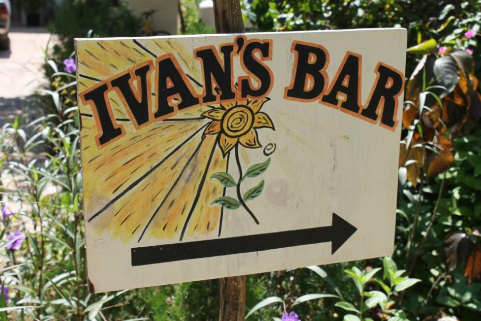 We decided to go down to the beach and visit our new friends the Twisters who were staying at Kuyaba. I have never been on the property there but had always wanted to because it looks so nice with all the wood. So we paid them a visit and what a lovely little place it is. After hanging at their place and chatting for a while we decided to head up to Red Dragon for some Jerk Pork...yum. We called Rob and Lisa and they met us out there too. It started to rain and there was a good breeze.....actually it was a little chilly for a bit. It was only a slight drizzle and overcast, not a real rain so we decided to head somewhere for our own makeshift Happy Hour....but first we rode back to Kuyaba to chill at the Twisters again for a bit..