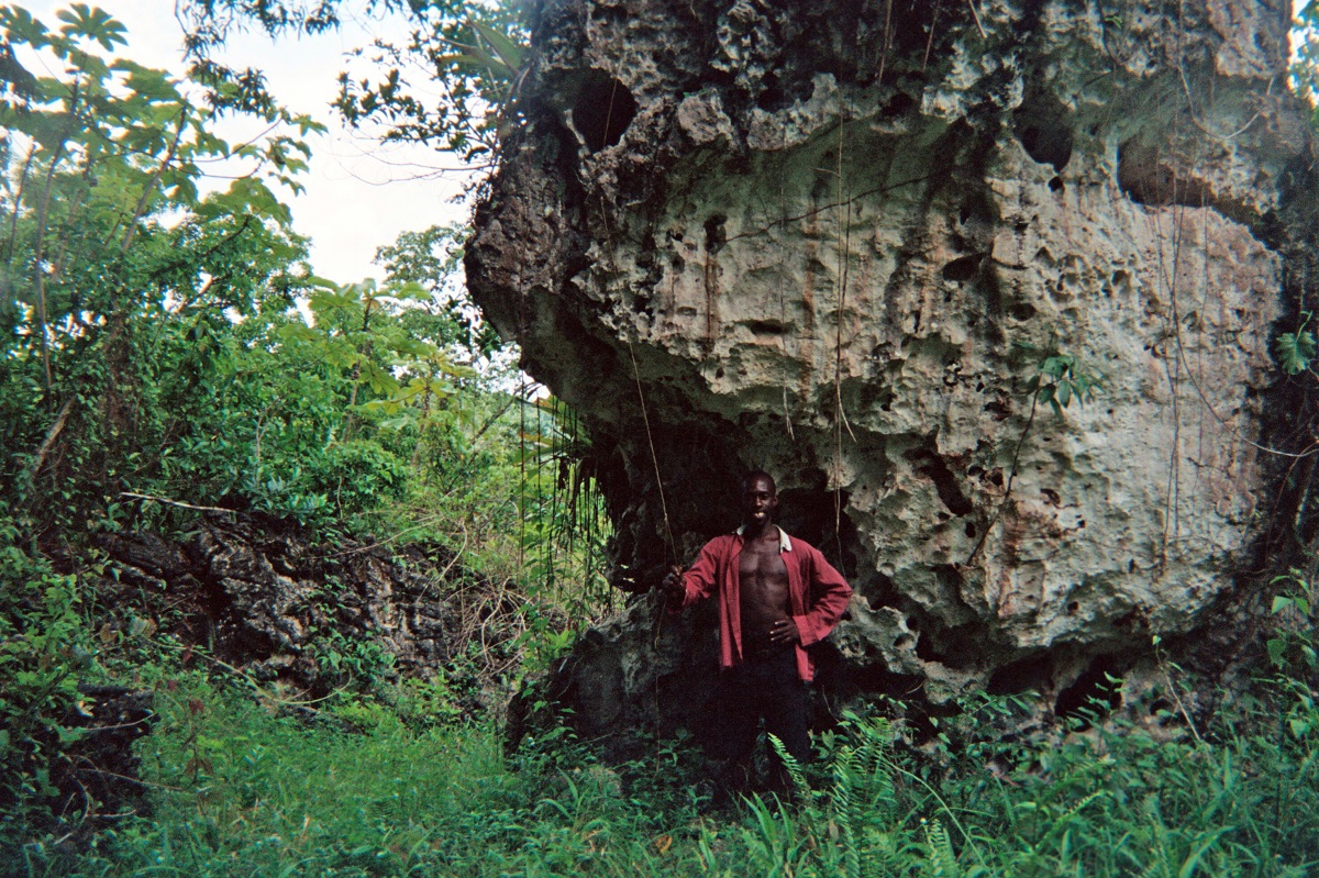 A picture of Marshall at the entrance of the Peace Cave outside of Accompong Town. This is where the Peace Treaty of 1739 was signed and where Cudjoe and his warriors would hide before attacking the British Troops at Big Ground.