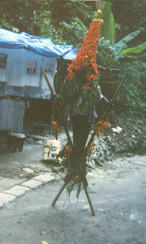 After the drinking of the rum and spitting it all around to ward off the evil spirits, the gathered crowd would clamor for a piece of each of these food items to ensure fertility. BTW, roasted boar without salt and not completely cooked through and through is nasty!