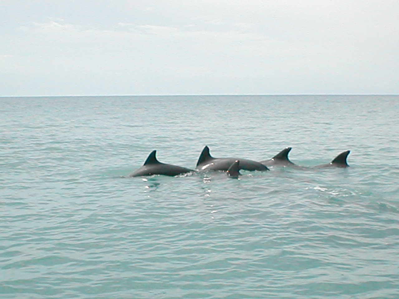 A picture of a pod of dolphins swimming along side us on the way to Black River from Billy's Bay, Treasure Beach.