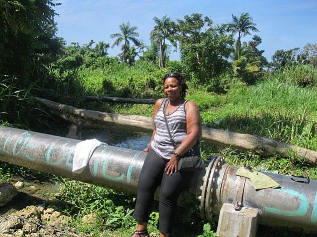 Breakfast is done and we are on our way to Sheffield, he is doing all the talking...and talking...AND talking!! I just listen and nod my head. He takes me to the spring and when we pull up there is a Rasta bathing...I felt like I was invading his privacy, although I know this is the norm in Jamaica. So he kept on bathing like we wasn't there at all and I would take a "peek" every now and then *giggles*. DriverP was trying to convince me to take my clothes off and "bathe" and "cleanse" my soul. UUUUHHHHH mister I just took a shower and I'm good!! We continue to talk and the Rasta finishes and goes about his business and then DriverP starts to undress (OOOOOOOHHH BOY...here we go!!!) and he gets into the water, I just sit on the large pipe, watch him for a bit but mainly take in my surroundings. It really was peaceful there and the greenery was lush and beautiful!!! I was waiting for him to try something being that he undressed right in front of me...but he didn't...that was odd for me because just about every man that I meet "tries his hand". He gets out the water and let's his body air dry and then we are off again on the road.