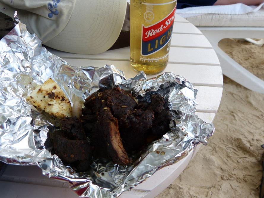 It's not that rain is a bad thing thinks Dave, in fact in Jamaica it's a good thing cooling things off, slowing things down, and greening things up...He just wants to go on a nice sunny walk, have some curried octopus and a few beers, and walk back enjoying all that the beach has to offer...yea right.