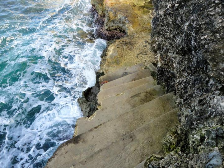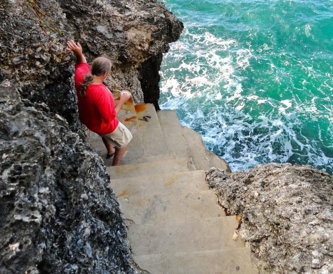 From there, many of the standard stops. On the Rocks. No Limit and Peewees. Peewee's was interesting. For those that have not been, it is a beautiful bar overlooking the cliffs. There is also a staircase to allow access to the water. Like many of these stairs on the cliffs, it is not for those with a fear of heights. No railings, steep, wet and slippery. We decide to go down anyway. We walk halfway down. We're at the scariest part. And there, right where the stairs make a little turn, where one slip could mean serious injury, what did we see? A banana peel. I felt like we were in a bad cartoon.