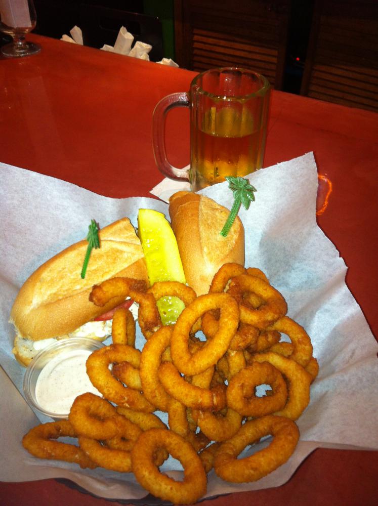 This my favourite overpriced airpot food, at Bobsled cafe, its the chicken bacon ranch with onion rings!!
