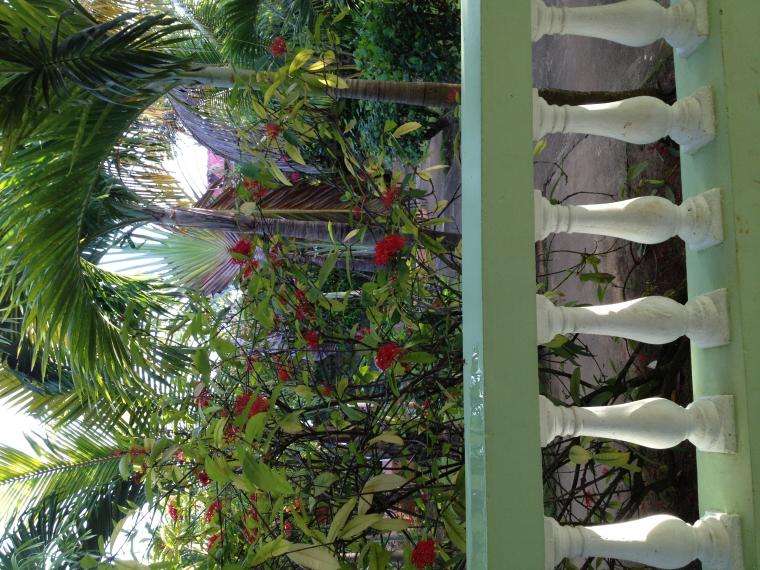 And that brings us to today. Here I sit, a belly full of saltfish and callaloo, coffee and rum creme, acclimating to the climate. It's about 10 degrees cooler here than at home right now, and I'm no stranger to humidity, but I'm definitely "glistening."By tomorrow or the next day, I should be used to it, but I'm definitely taking it easy today. I'm so content to just sit on the porch, hear the birds chirp, watch this beautiful yellow and black butterfly flit from flower to flower just a few feet in front of me. As I typed that, a hummingbird took his place. I love hummingbirds. We hang feeders at home but only get to see them for a few months before they move on. Their colors aren't as vibrant as the ones here. So emrald and brilliant. *sigh* Paradise.