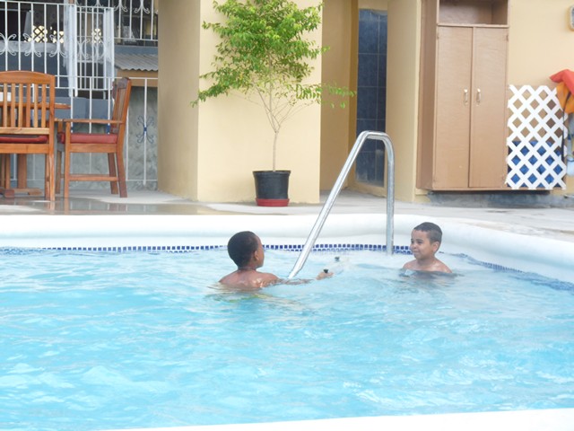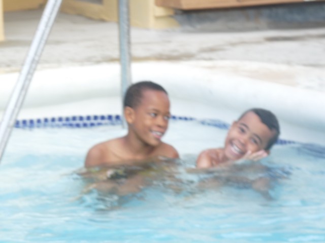 I went to the pool and some children were there Jamaican children friends of Seastar and there were 2 little boys one age 9 and one age 2 and they were so cute and funny and very well behaved,They was making me laugh and they soon made friends with my son and soon enough they were racing, floatie boarding, going under the water together and cannon balling!