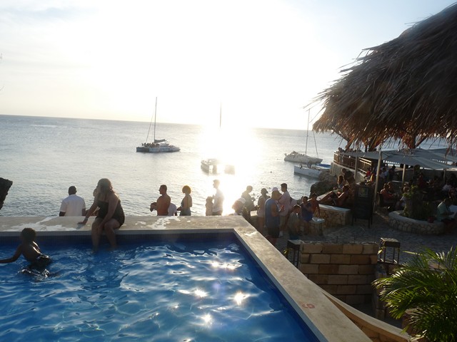 Ricks cafe was really lovely the pool was warm the sunset was beautiful it was packed out and still felt warm.As sun was setting everyone came in all dressed up and there were little candles on the tables for candlelit dinners.Everyone really enjoyed it.The little boy thought it was funny because I was afraid of everything I would not let him out of my sight and I was watching him like a hawk in the swimming pool , he is an excellent swimmer and I am sure if I took my eyes off him he would give the divers at Ricks a run for their money! Then he wanted to watch the divers and i was holding on to him saying don't get too close to the edge!