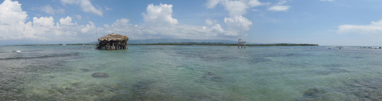 His first words to me where something like we need to make sure no comes out here. They’ll step on all this wildlife. I remember thinking that sucks for us guess we have to stay here in this spot then. Our wives wont like that. We looked around at all the sea life and found an ominous hole that neither of us were willing to further investigate with a finger or a closer eyeball, but we both wondered what could be in there. We talked about how beautiful it all was and floated around on other varying subject before Guirigay joined and soon after him SweetiePie. We came up short on warning her about the mucky area before she almost lost a water sock. After taking a series of pano with and without GuiriPie in them (which incase you havent heard it enough, those were on the lost camera) I moved to go back to the bar and find my wife.