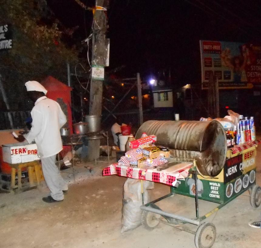 We spent another hour at BB grooving to the beat. I was HUNGRY now. I asked Mr. T where we can eat. He said nothings really open besides the Jerk stands. That sounded perfect to me. I was definitely in no shape to prepare a meal on my own.