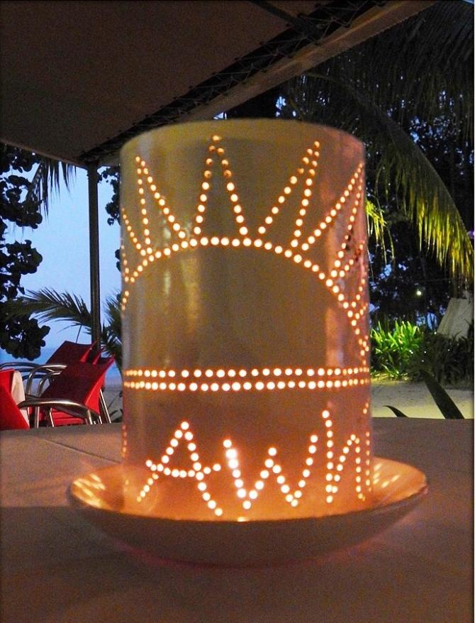 Beautifully branded candle holders seen at our Chill Awhile restaurant.