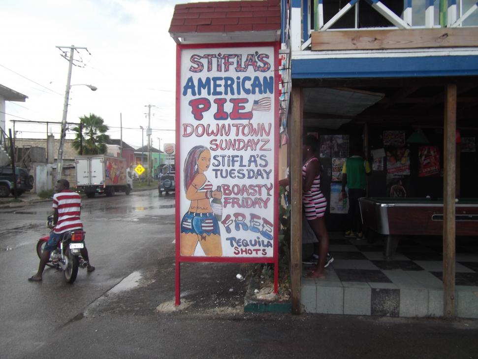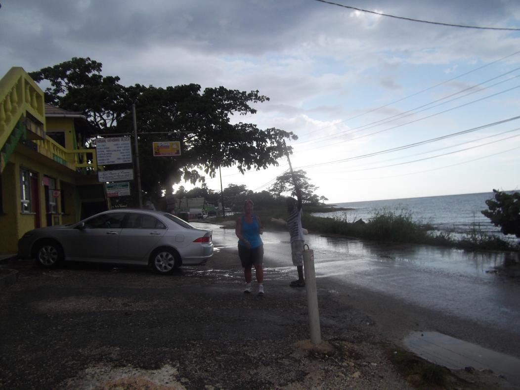 after my 2 walks, I am ready to chill...not for long...Janet got a call from rina and larry and we are to meet them back in town to shop for souveniors...since I had just returned from my walks, I called fast car and he gave us a ride...larry met a guy who gave them some good deals, and also offered free rides if you bought stuff from his store...his name is Mike and he has a shop at the sunshine plaza...you get a free drink for entering and shopping and then he will give u a lift home, or come pick u up at your hotel...call him at 876 857 4644...shop is called sun and sand...we bought some red stripes for 90J at the hi lo in the plaza....it stormed pretty hard and we got caught up in it....after shopping rina and larry got mike to take them back to catcha, so went upstairs and looked around...I got a bite from a local joint called fergies..will do this again next reach....lunch box 300 J, bout 6 options, brown stew pork, and chicken...very tasty and cheap....cheap enuff to lure me in, even though we had all inclusive back at legends....after rain died down, we walked back...