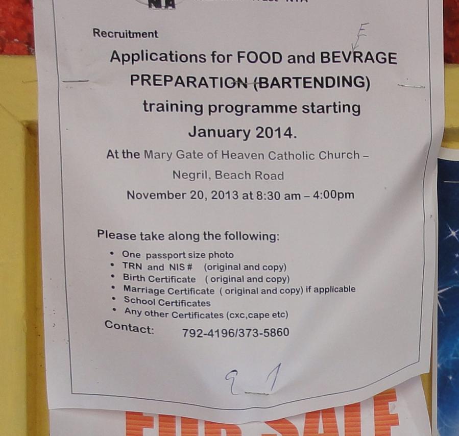 I love this notice - come and learn bar tending - at the Catholic Church.