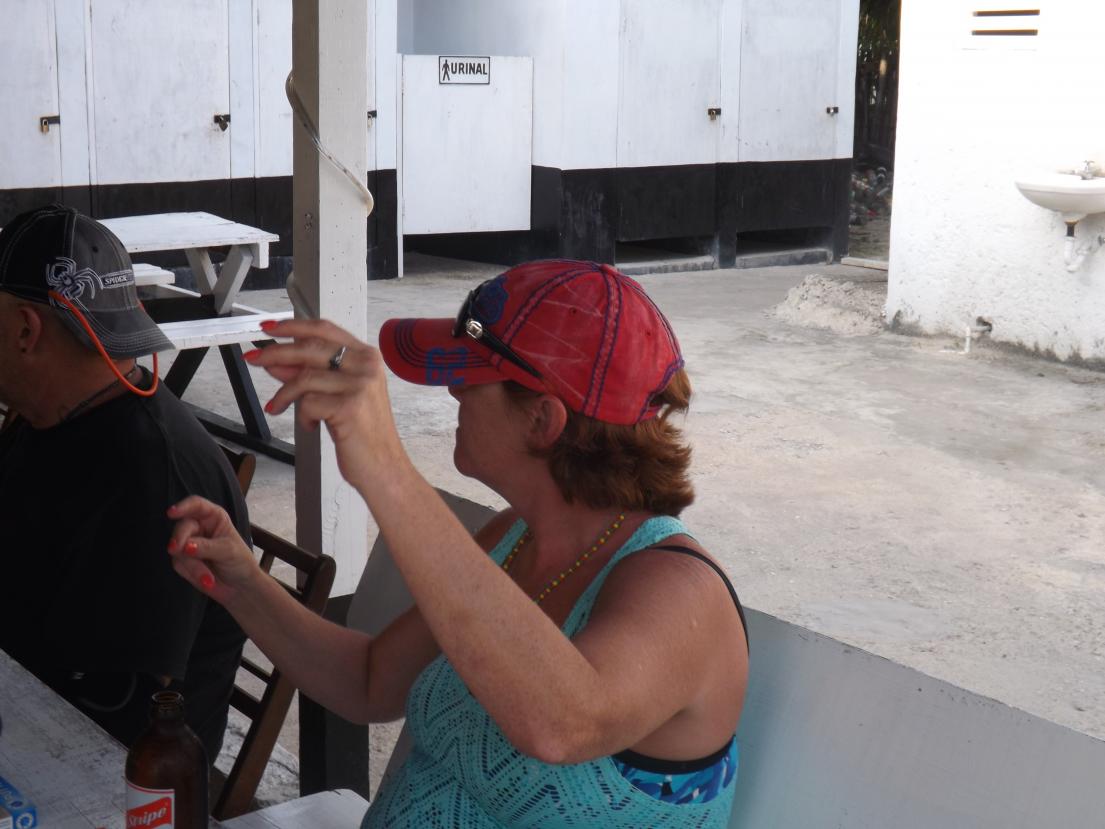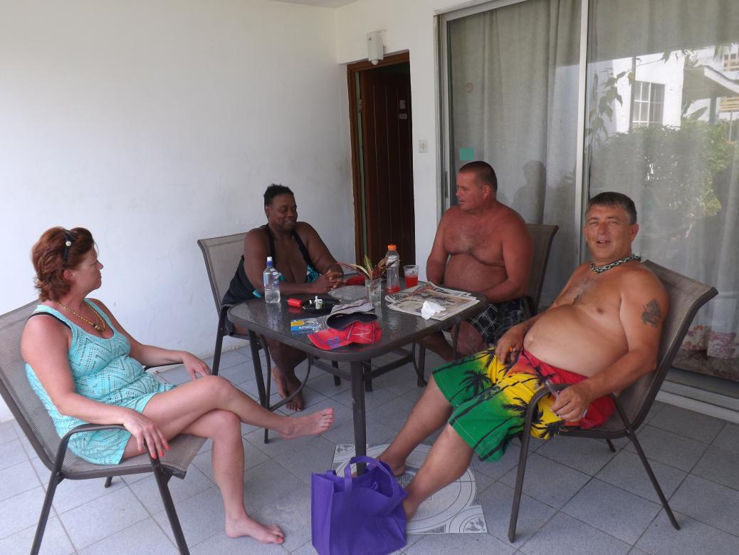 we sleep in after a few late nights...about 830 for me, about 10 for janet...I swim around in the pool until she gets up...we eat a late breakfast and do teh pool thing for awhile...dont really have any plans today...roy and I had signed up for a pub crawl today, but since we did the one on Monday, we didnt know...Janet and I decided to walk towards their room and see what was up for the day..we plan to stop by barbbarn to talk to our friends...on the way, we try to find our friend, Babelew...she stays at NBCC....she has a bottom floor with a great view on her veranda...it is the same room featured in Crushers trip report earlier in the year.....I just had to check out the view from the veranda....and it didnt disappoint...u walk right out of yur veranda, and witin 10 steps, you are in the sand of the beach, water about 50 yards away..........