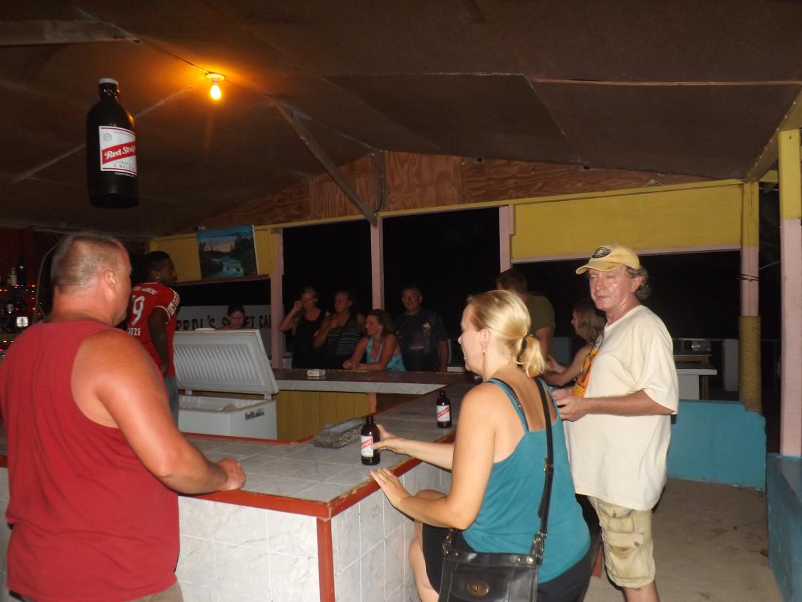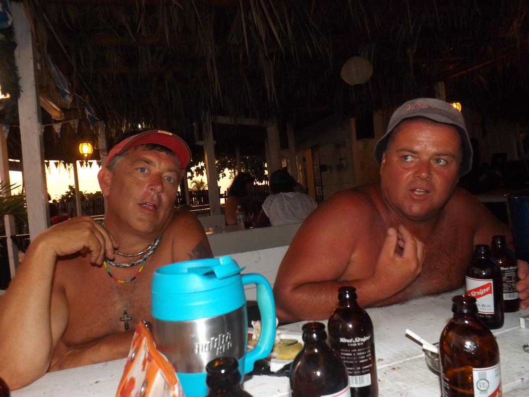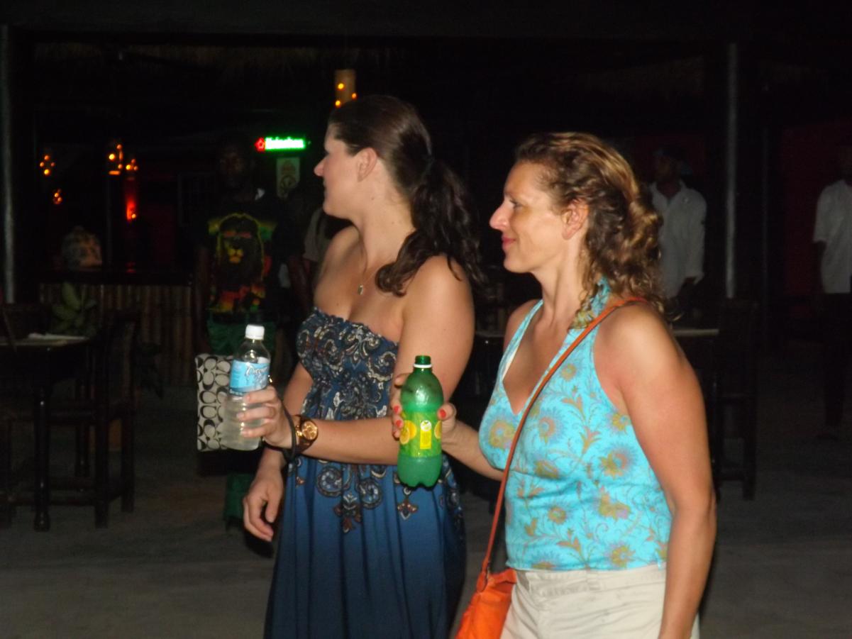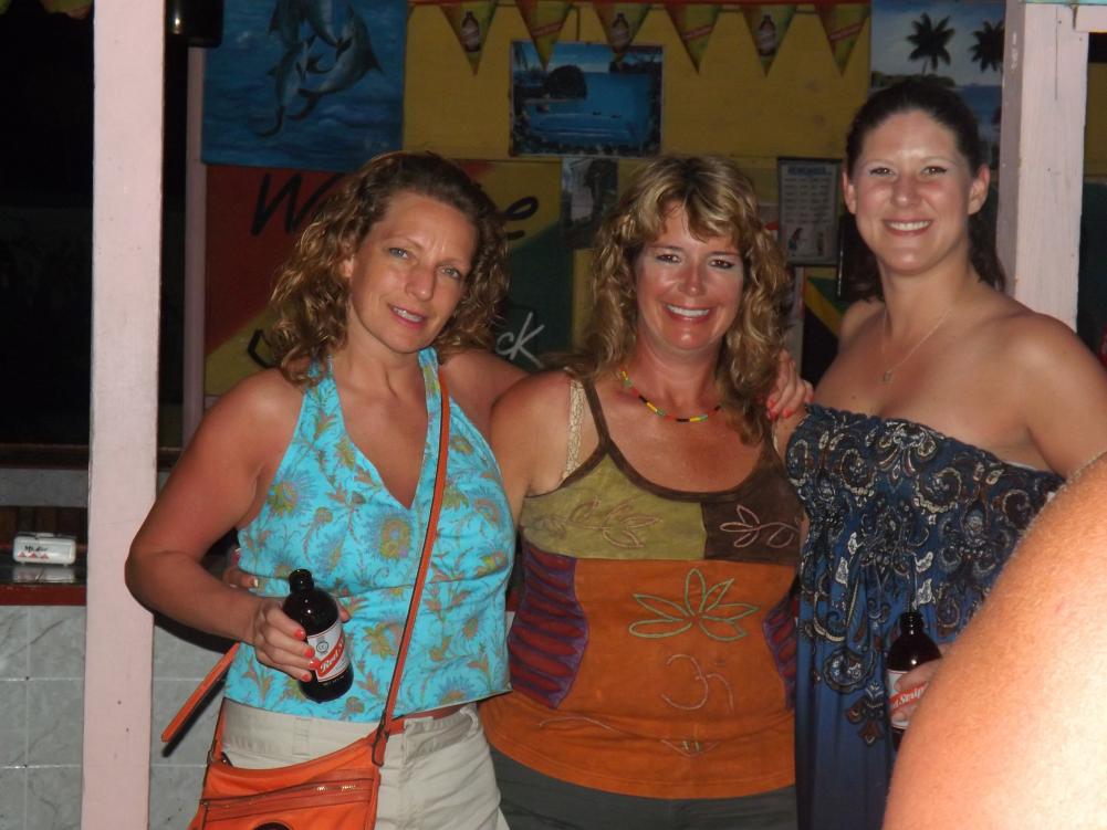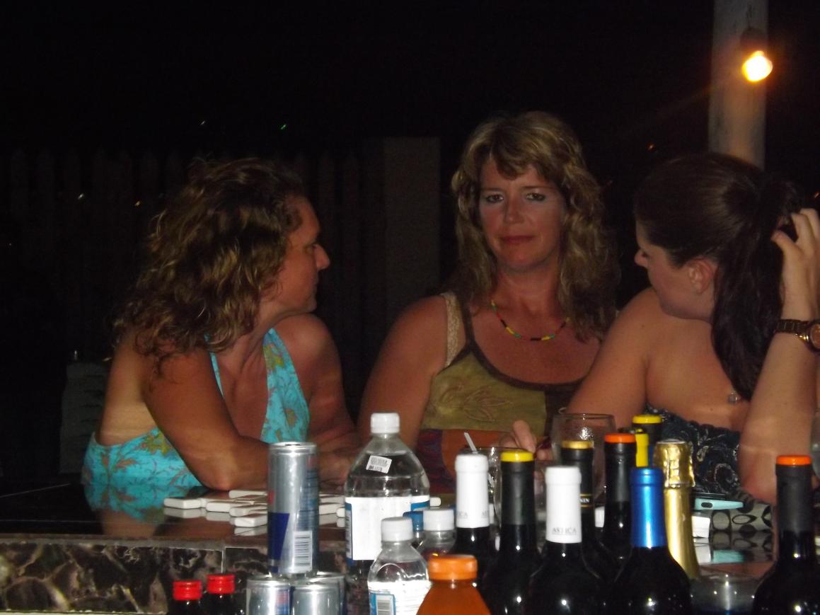 tonight is Roy Mon and Ginger"s last night...I am gonna miss them so much...he wants to stay close to home, so we agree to roots bamboo, as there is a live band and no cover...we are getting ready to go when flip and jackie arrive, letting me know that they are planning on meeting rob and lisa here..some new boardies arrive today at travellers...so we go on a search party for the couple, but do not find them...we are joined by a couple girls from maryland and another couple girls...roy and sheri must have gotten tired of waiting, cuz here they are...lol