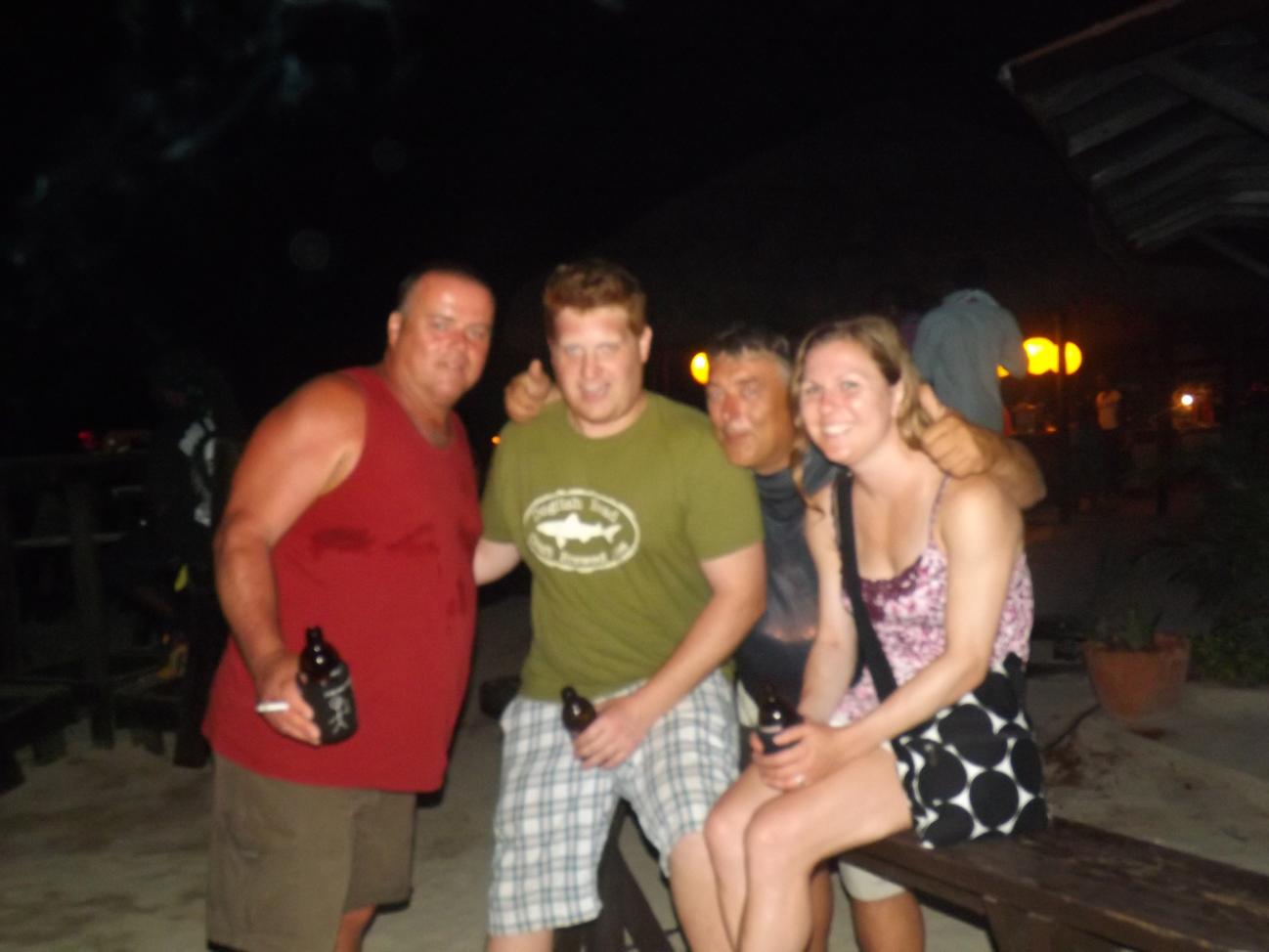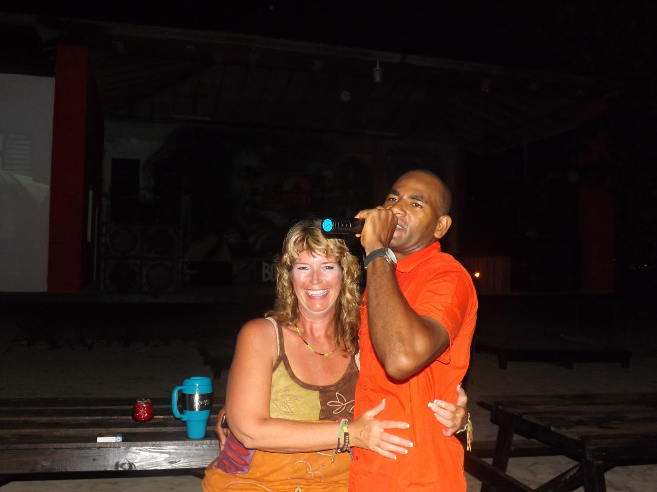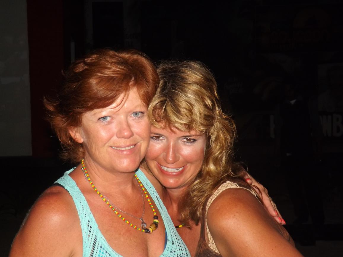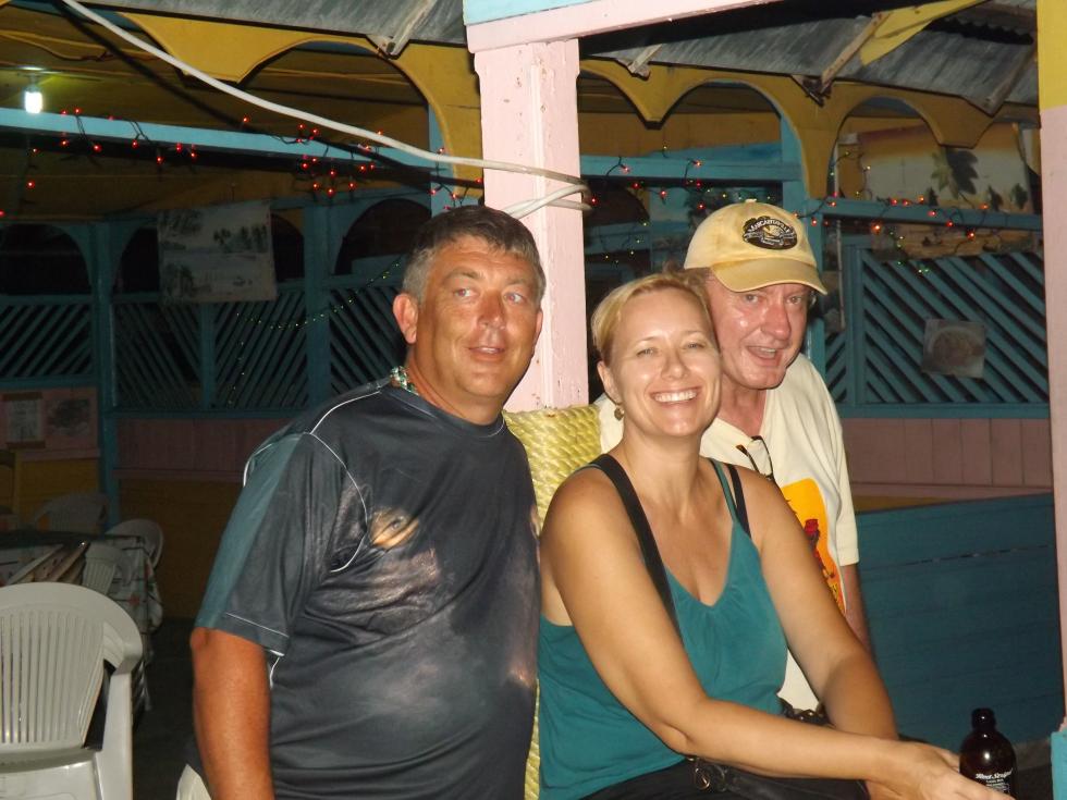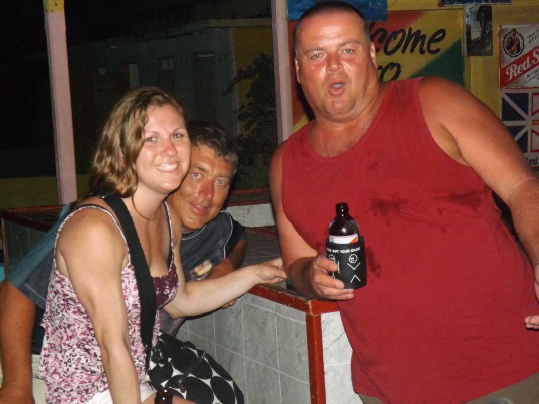 tonight is Roy Mon and Ginger"s last night...I am gonna miss them so much...he wants to stay close to home, so we agree to roots bamboo, as there is a live band and no cover...we are getting ready to go when flip and jackie arrive, letting me know that they are planning on meeting rob and lisa here..some new boardies arrive today at travellers...so we go on a search party for the couple, but do not find them...we are joined by a couple girls from maryland and another couple girls...roy and sheri must have gotten tired of waiting, cuz here they are...lol