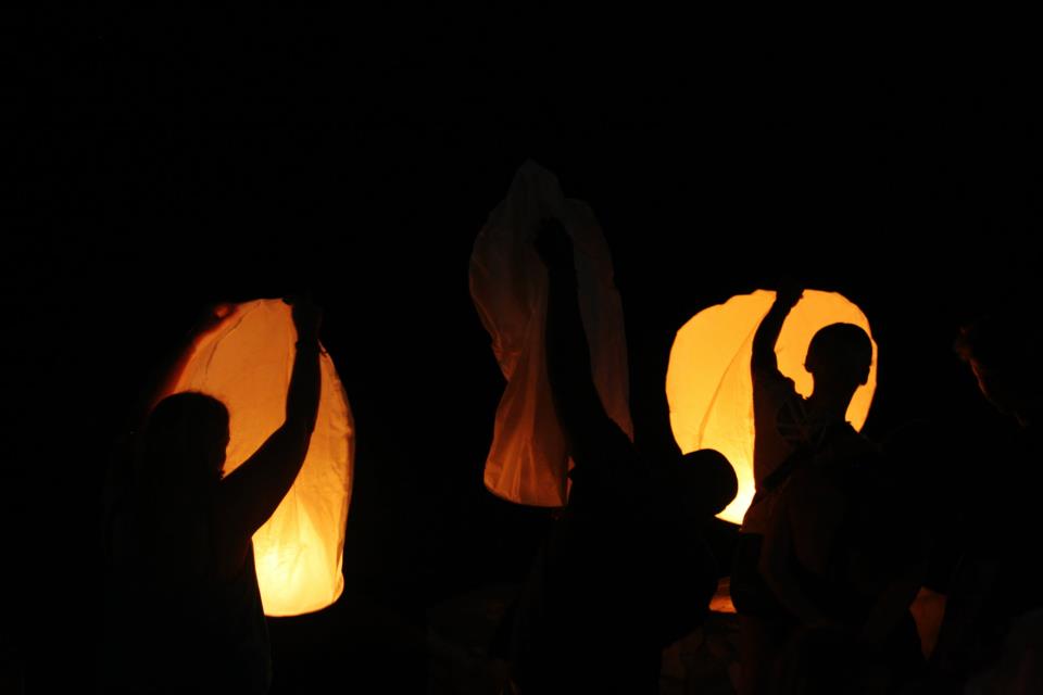 After all of the shots we decided we wanted to do a “test run” on our chinese lanterns so I grabbed the ones I brought (about 10) and we all headed to the cliff edge to see if we could get them lit and launched. Before we did that, a couple of us wrote our wishes on our lanterns with a marker. Once we were at the cliffs we struggled a little with determining how to light them and exactly how long they needed to be lit before attempting to launch them.....the first one was a crash and burn but eventually we all got the hang of it and managed to get them launched. It was really cool and we all enjoyed that.