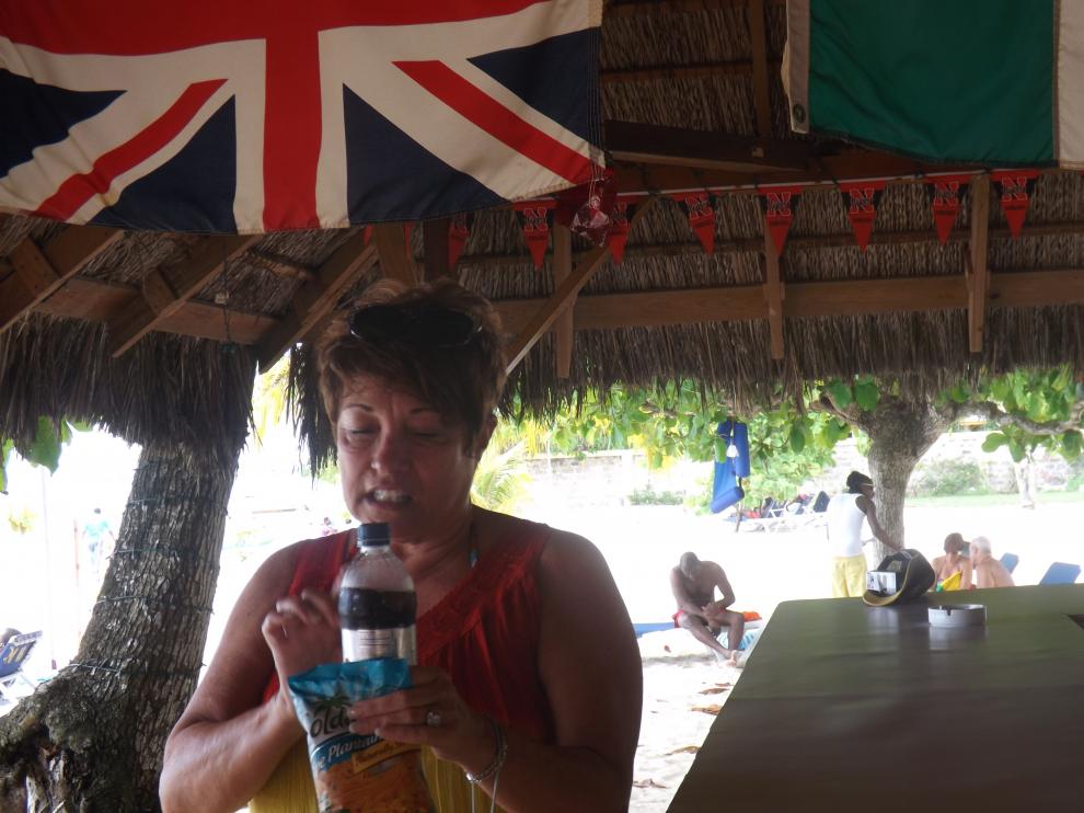 we get up and eat our breakfast at shields...Janet stays and suns while I walk to times square to look for a memory card for our camera...Not at times square, but i am told to go to the digicel store at the roundabout...so I walk downtown...Digicel sent me to the coral seas shop across the street above the cambio....Bingo...they are a thrift type store and have a little of everything....I need to exchange money...everytime I exchange money, I am approached by the guys wanted me to use them to change my money...I always jst point at the cambio and say, yeah, you can change money right there...no mon, I give u a great rate, and he pulls a wad out of his pocket....and I say, yeah, mon, they change money right there, come on, I show you, and laugh as I walk into the cambio....