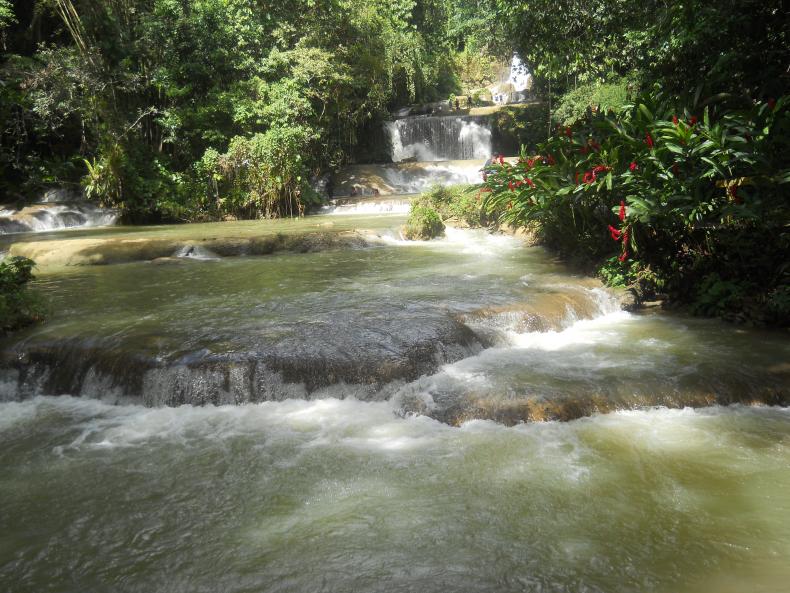 Y.S. Falls is a nature-based attraction in Jamaica that offers the opportunity to experience the beauty of the waterfalls surrounded by trees and garden.