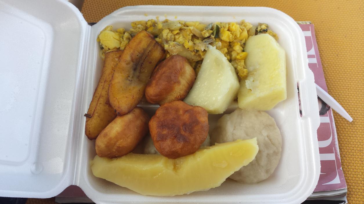 Saturday morning I got up bright and early and went to Sweet spot for Ackee and saltfish, plantain, boiled dumplings, fried dumplings and yam quite a lot of food for $450 JA and very good.... no way I could eat it all.